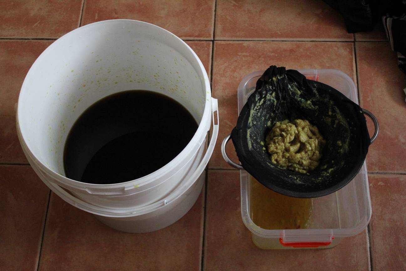 Еще раз отфильтровали "грубо" уже через марлю.
