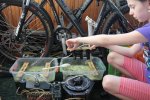 Через несколько дней, когда новые аноды тоже растворились, приступили к очистке. Первый этап, очистили от рассыпавшихся электродов через дуршлаг.