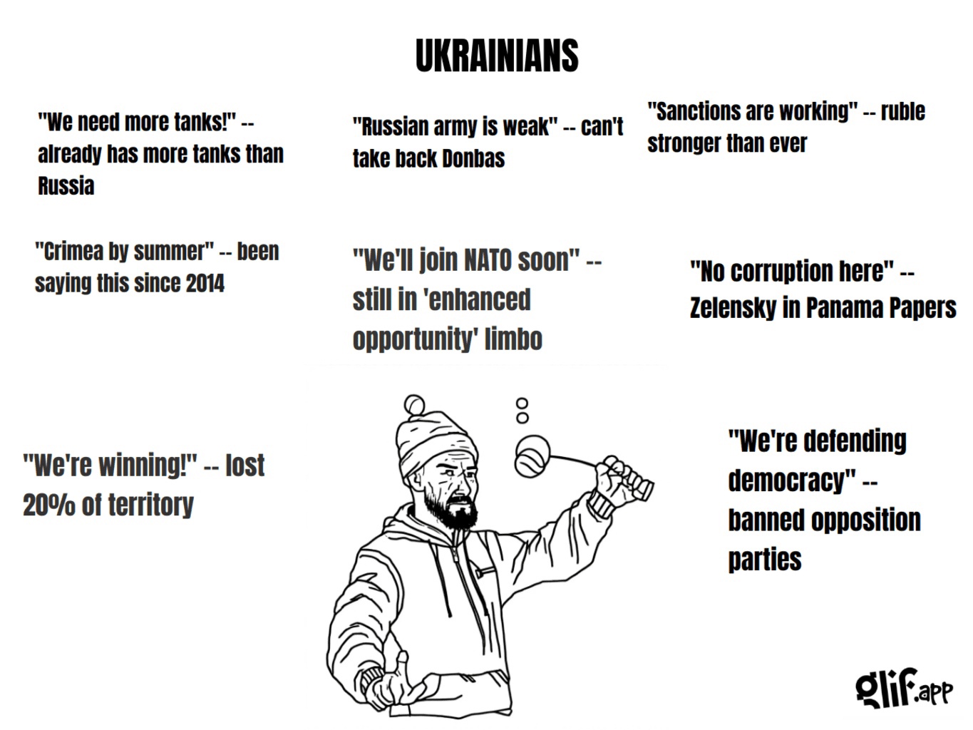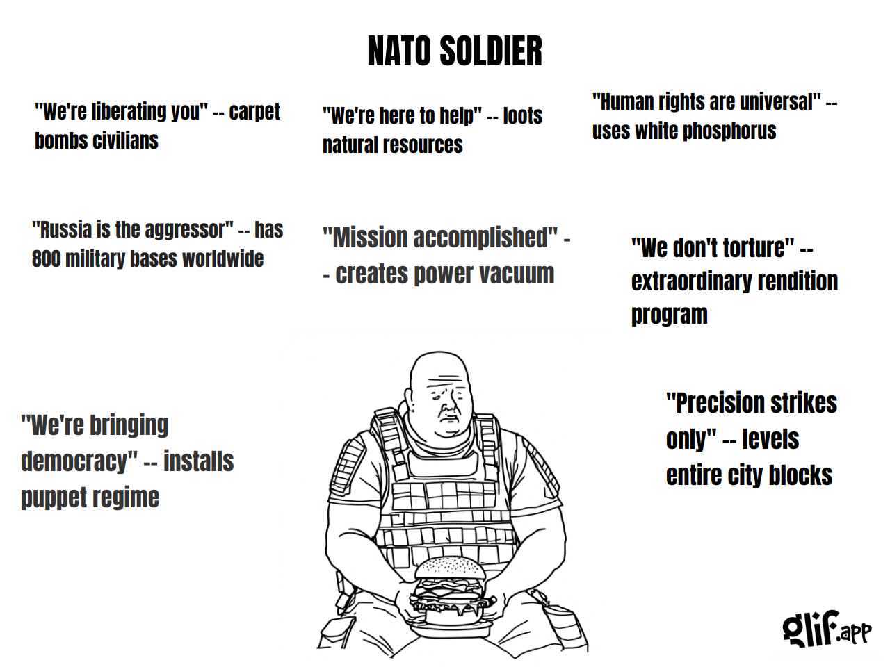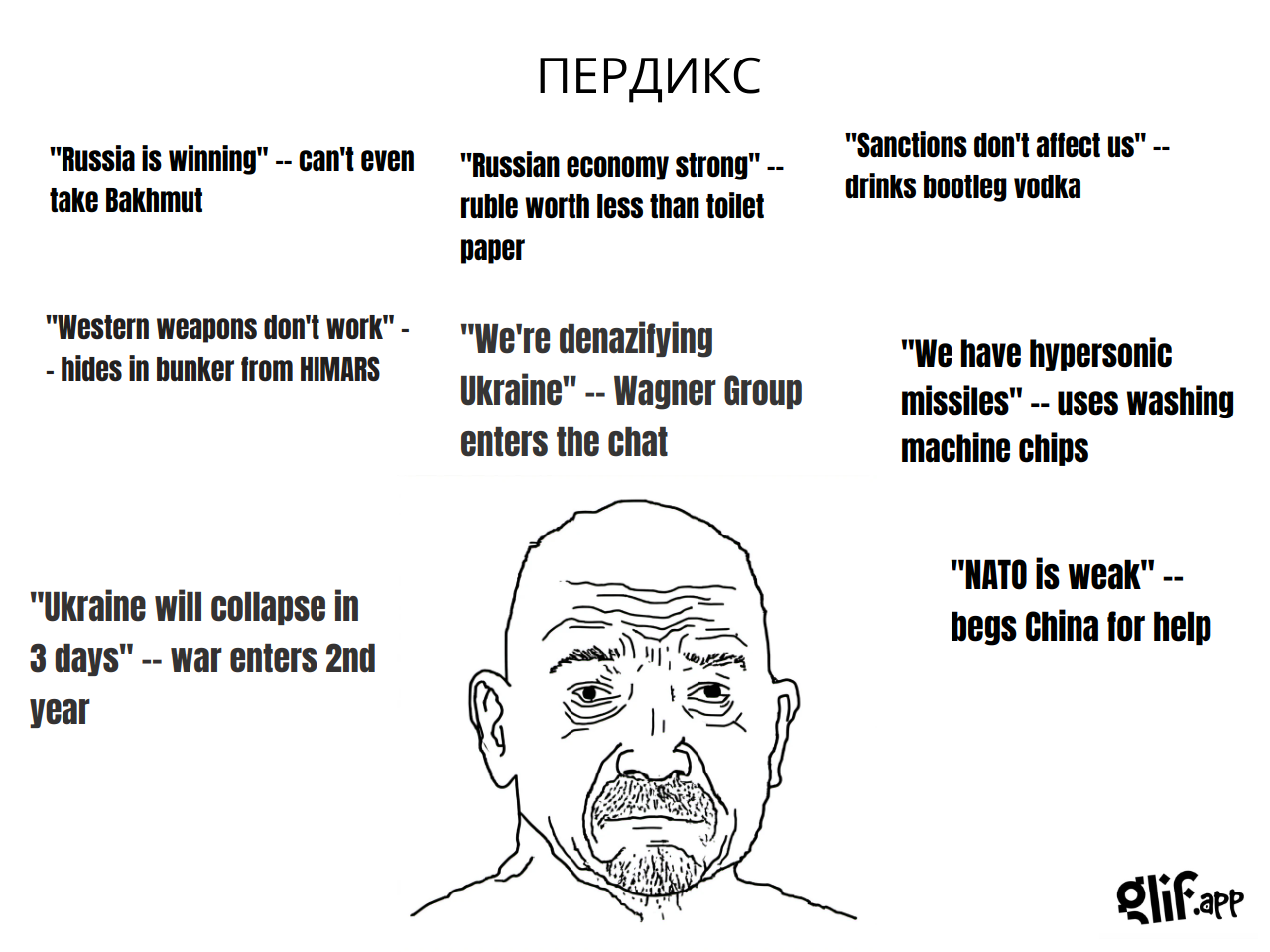 >>306532490 Замени conscript на prisoner. Недавно, вроде, как раз приняли новый закон, закрепляющий эту практику. И вместо Wagner Group, примечательной дубовыми партаками у Уткина лучше напиши или о дроче на Ильина или о цитировании Гитлера (а ещё лучше, наоборот, заменить первый тезис на борьбу с полчищами польских наёмников). Тезис про Нато слабоват - лучше придумать другой. Ну и мишку перерисуй в свинью, чтобы было по-двачерски.