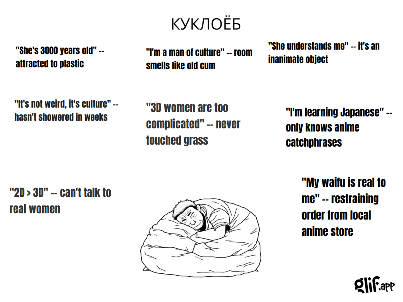 если не разобрался в чём мем - иди литру почитай на следующий год, чем пиздеть не зная, микро-чмо ебучее)