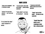 — Двач, а почему я суп так медленно ем? И мне очень неудобно. — Потому что ты ножом суп ешь? Ложкой ешь. — Ложкобляди не нужны! Бамп! Еще варианты? Бамп! — Ну отхлебни из тарелки тогда. — Ебанутые...