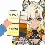 Душная игра пиздец, вот мне выпали лайла, шевролез и ка мин. Я бы их прокачал, но ка мин это пиро, а у меня уже есть арля и Мяв, Лайла б пошла как крио аппликатор, но тогда зачем мне скуфья или вернее зачем лайла, когда скоро будет скуфья. С шеврёз интересно бы пачки попробовать, но вообще то мне не хочется ебаться с долгой е-шкой ещё и пачки такие не то чтоб нужны, потому что хочется юзать мелт, а если дать в пачку шеврез, бениса и иансан, то в другую пачку никого не останется. А ещё где я столько моры возьму всех качать?