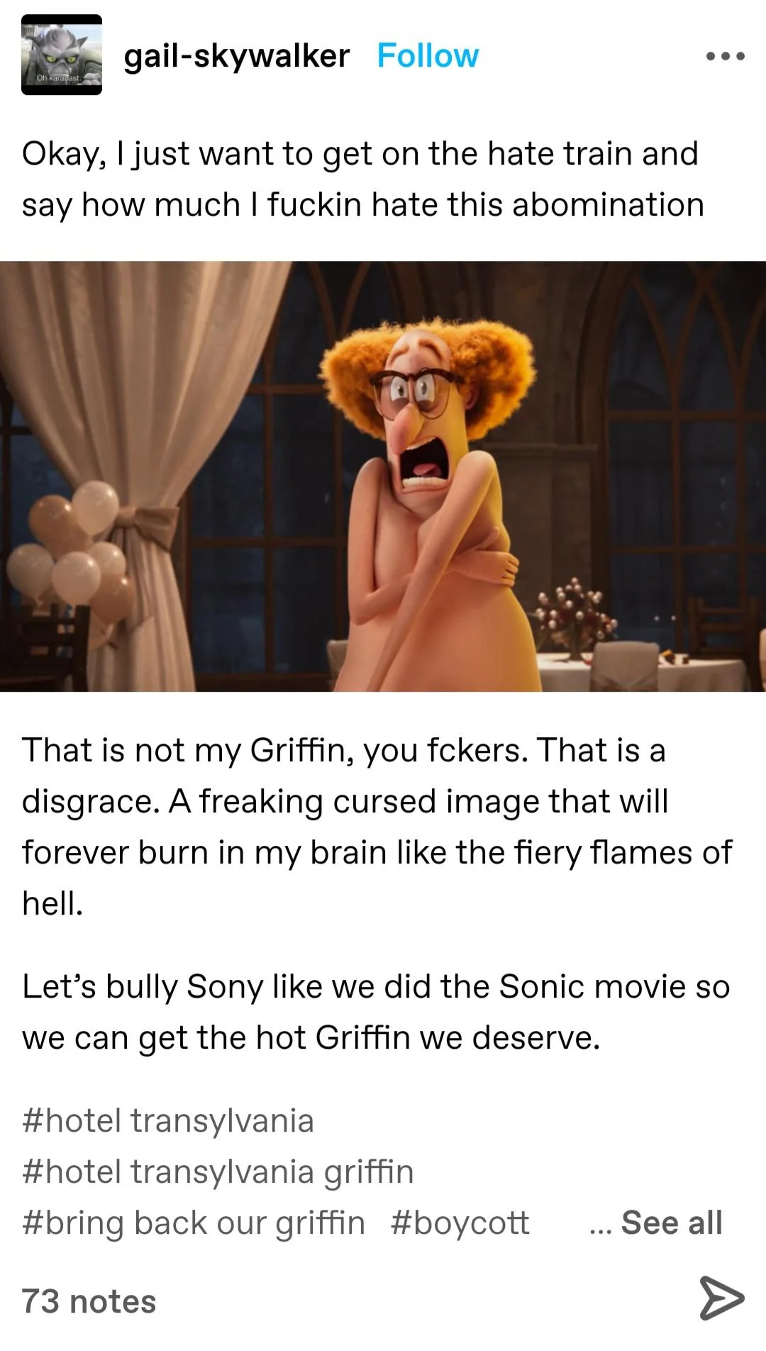 >>4742815 >и не представляет, как он выглядит Оффтоп, но напомнило. Был какой-то мультик детский-подростковый про монстров которые в отеле оргии устраивали и дочку главвампира воспитывали в перерывах, там был невидимый человек - с красивым голосом, но абсолютно невидимый, девочки фантазировали касательно его дизайна и думали, что там высокий джентльмен с волевой челюстью и пышными волосами.