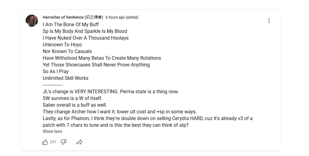 Давайте лучше по теме треда обсудим. Заметили что шоукейсов с фуфлоном гораздо меньше чем с фейтовичками и старыми бафнутыми чемпиками? Это потому что его геймплей неинтересный и невариативный?