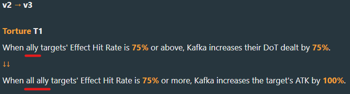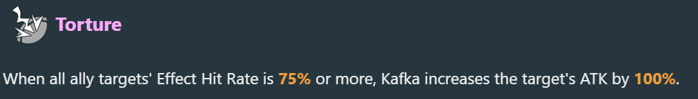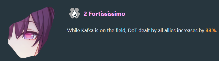 Ах да, у Кафки ещё в трейсах бафф атаки всех союзников вместо дотов, что типа лучше, а бафф дотов в эйдолоне. Ну типа так, неплохо, наверное.