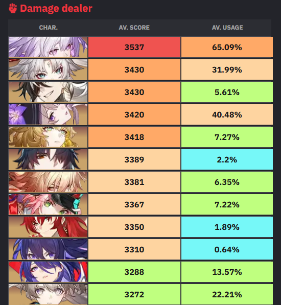 >>4971603 Зачем тебе Зарянка в дотах? Вот Фофа, да. Но залив атаки будет работать на все атаки союзников, а бафф дот урона только на один. Правда дот урон - это их основной, что конечно грустно. Но я расцениваю эти изменения как попробовать вернуть старый эйдолон, как выше анон написал. Если увидят, что на е0 стала сильно хуже в бис пачке. Да, михойо наверняка сразу с Гисиленсой её на внутряке тетируют, это мы не видим.
