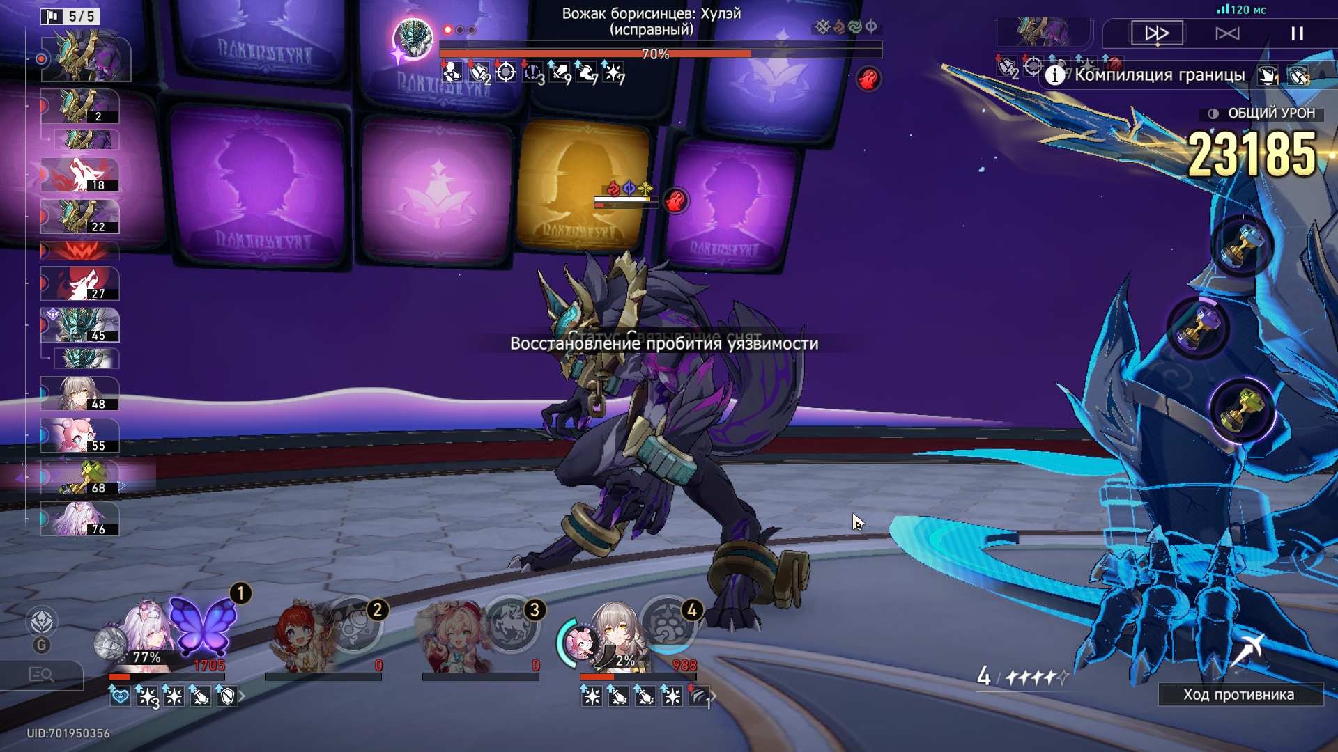 >>5177280 Потому что циклы имеют значение в AV, а скорость персонажа это сколько AV он проходит за ход. Представь что ход это 100, тогда персонаж со скоростью 49 сделает один, а 50 - уже 2. Так и тут. 134 дает второй в начале и вроде на третьем на дистанции. Просто удобное значение, особенно если чут чут не хватает вайпнуть первую волну и сбросить цикл. Но это в любом случае не критично.