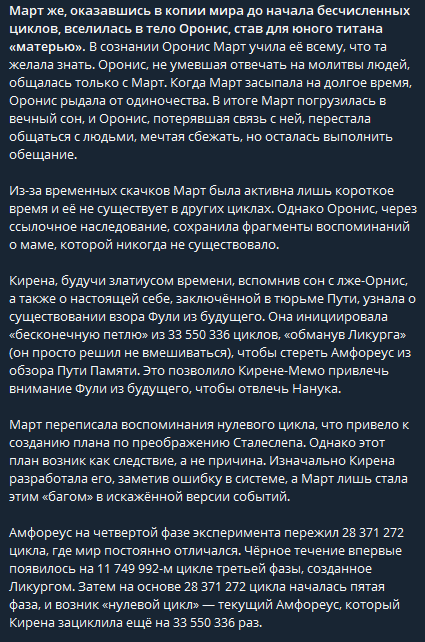 Я правильно понимаю, что Марти Стью из нашего цикла за 4 патча из значимого сделал только обсер в испытании Никадора-помидора и уронил четки с душой Аглаи? А когда на него свалилась сила тридцати миллионов циклов терпения Каосланы, то наш "спаситель" просто самоутилизировался об Нанука...