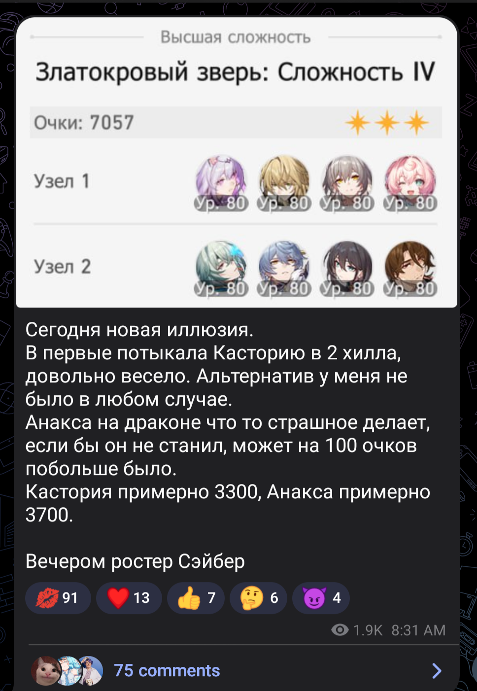 Знаете что самое забавно? Ляо молодец и спецом просчитал так, чтобы Фаенон без сигны не мог нормально юзать механики нового босса и убить призрака который ресетит ход, сделав противника чуть-чуть быстрее чем Фаенон. Но с сигной, которая дает флет 12 скорости, считающейся в ульте, Фаенон обгоняет этого духа и спокойно может ебать половину без напряга. Так что крути сигну, если хочешь нормально играть в новых патчах Теперь вот такие вот механики для байта на сигны и консты