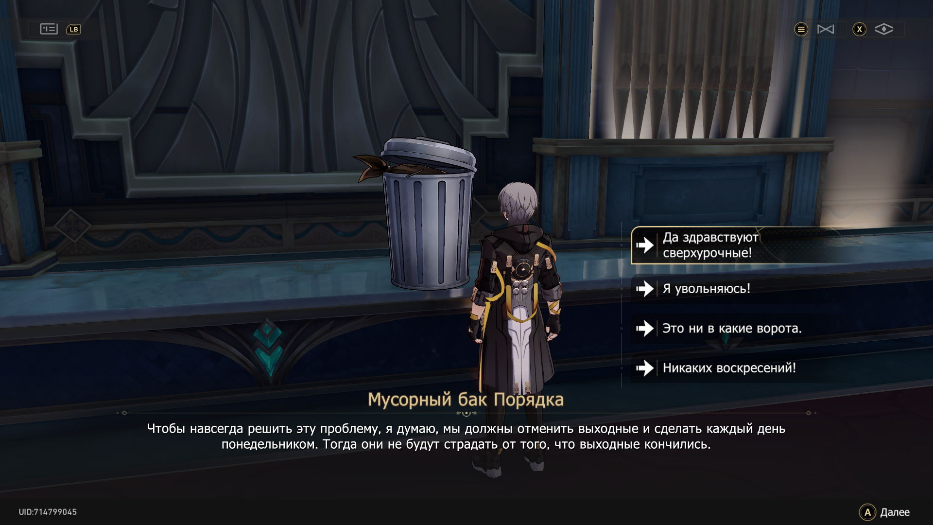 >>5176970 Чел, это буквально космическая станция расположенная хуй пойми где вне путей проложенных. Это суперкомпьютер, построенный Рупертом для Нус. Формы мы его тоже не знаем, эта восьмёрка - это иллюзия или поле или хуй знает что, мы приблизились к ней в вагоне и исчезли там, очнулись влетая уже в "атмосферу". Шаоджи это точно расскажет, так как Скрюллум сообщил в этом патче, что хуй знает как вы сюда влетели и где вы. Возможно даже в следующем патче, так как Дэнчика Скрюллум начал выводить из матрицы.
