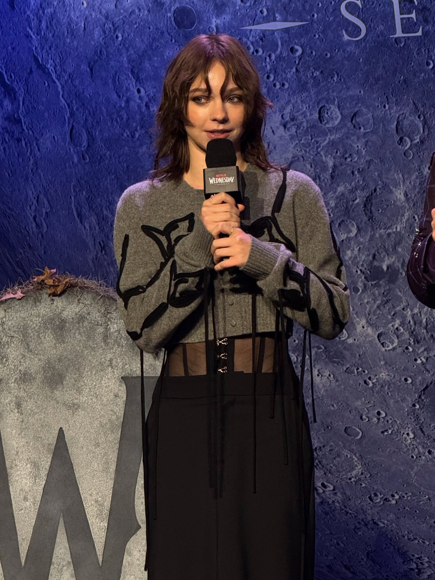 Ортега: Но мы увиделись только один раз! Так что, когда мы прибыли в Ирландию, чтобы снимать «Уэнсдэй», было приятно наконец увидеться.