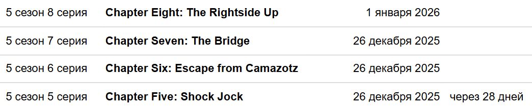 5 не смотрел пока хз буду ждать все серии наверное. И хорошую озвучку, не хочу читать. У 1 сезона был топ дубляж официальный, а 2 3 3 сезоны норм озвучки не имеют. Увы.