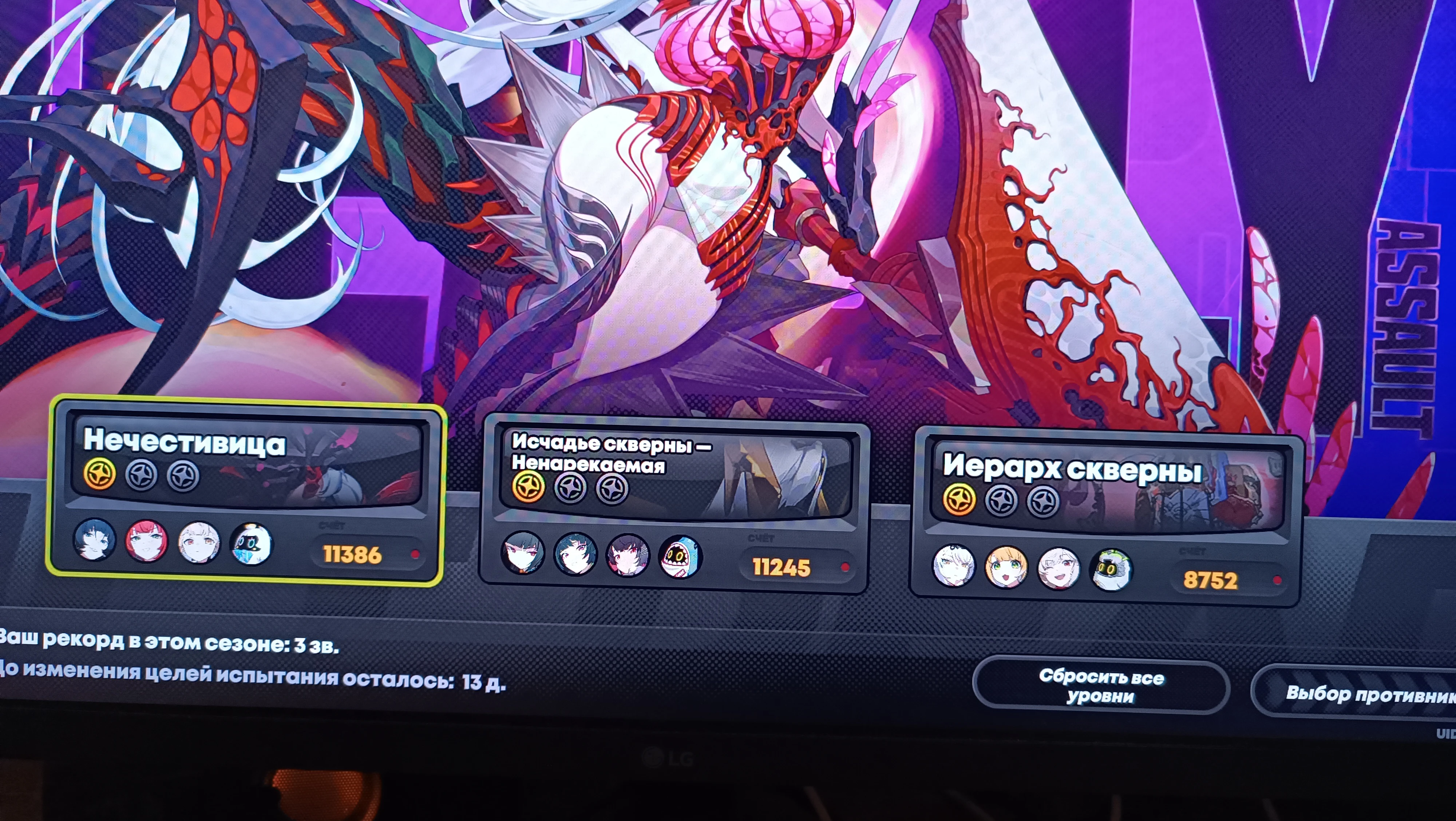 >>5513546 Я чета потыкался за Янаги/Гашетка/Астра, 15к набрал, понял, что Панама ахуел и забил хуй на нового босса. Я могу, конечно, снарядить Чжу, которая без дисков сидит, или прокачать Билли и забрать эти ссаные 20к, но нахуй надо. Первый ресет, который я даже траить не буду. На пикриле прошлый ресет.