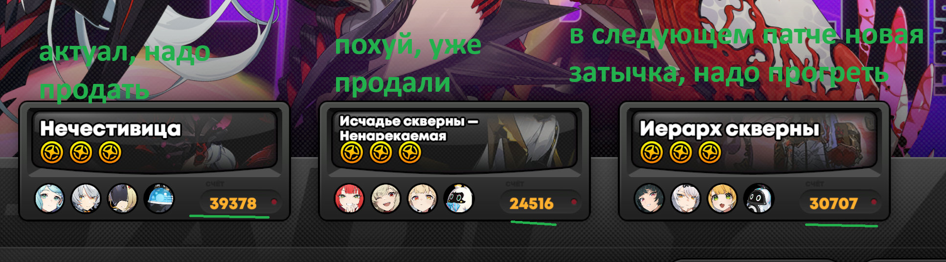 >О нееет, невозможно закрыть старыми паверкрипнутыми персонажами с прошлых патчей, без сигн, без конст, без лимитных подсосов, без М1 Астры, без Юзухи, без Мибоба, без Исюань.