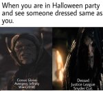 Было бы лучше, если бы они в нормисовой одежде ходили, ну максимум - добавить в нее индивидуальности для каждого персонажа. Они и так сверхлюди, нахуй отдельный маскарад из толпы выделяться? И не стыдно было бы смотреть при маме такое. Но тогда же гомиксодауны завопят НЕ КАК В ГОМИКСАХ