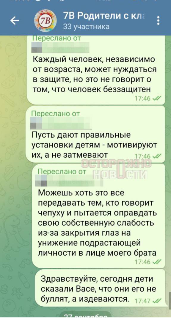 Три года назад женщина перевела сына в параллельный класс, но спустя два месяца в него же перешёл и обидчик. Марина неоднократно жаловалась директору школы Юрию Плотникову, но он, по её словам, так и не провёл беседу с родителями агрессоров. В ответ руководство спрашивает, как ребёнок «будет защищать себя в армии». Также Марина писала в родительский чат, но никто на её сообщения не ответил. После этого, по словам матери, травля усилилилась. «Мы тебя не буллим, мы над тобой издеваемся», — сказали Василию одноклассники. Родители не могут перевести ребёнка в другое учебное заведение, потому что это единственная школа в посёлке.