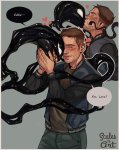 >>6302311 Там была мрачная часть (первые 2 пика как раз оттуда), где эдди возвращается в дом к своему абьюзивному отцу, чтобы поговорить и пока тот орёт на него на крыльце, он видит дилана, который обращается к отцу эдди "отец". В итоге веном нападает на отца веном там сильно деграднул, не может говорить, не имеет сознания, просто агрессивен ко всем, кто нападает на эдди, но это не навсегда. И эдди сбегает, тк не может контроллировать венома. Ему негде жить, он бомжует с веномом в переулках. Его сын находит его, думает они братья и просит помочь убить их "отца" Вот здесь я была очень вовлечена, как бы было ахуенно, если бы вместо ебучих глобальных событий, где они просто дерутся с другими героями, здесь бы притормозили и показали бы реабилитацию венома, как они всей семьей становятся на ноги, как пездюк начинает им доверять, как веном избавляется от паранойи к Дилану, как эдди справляется с этим, пока веном не может его поддерживать как раньше Мне нужен такой фанфик, но я видела сколько там фанфиков, дай бог там порно есть, о макси я не мечтаю