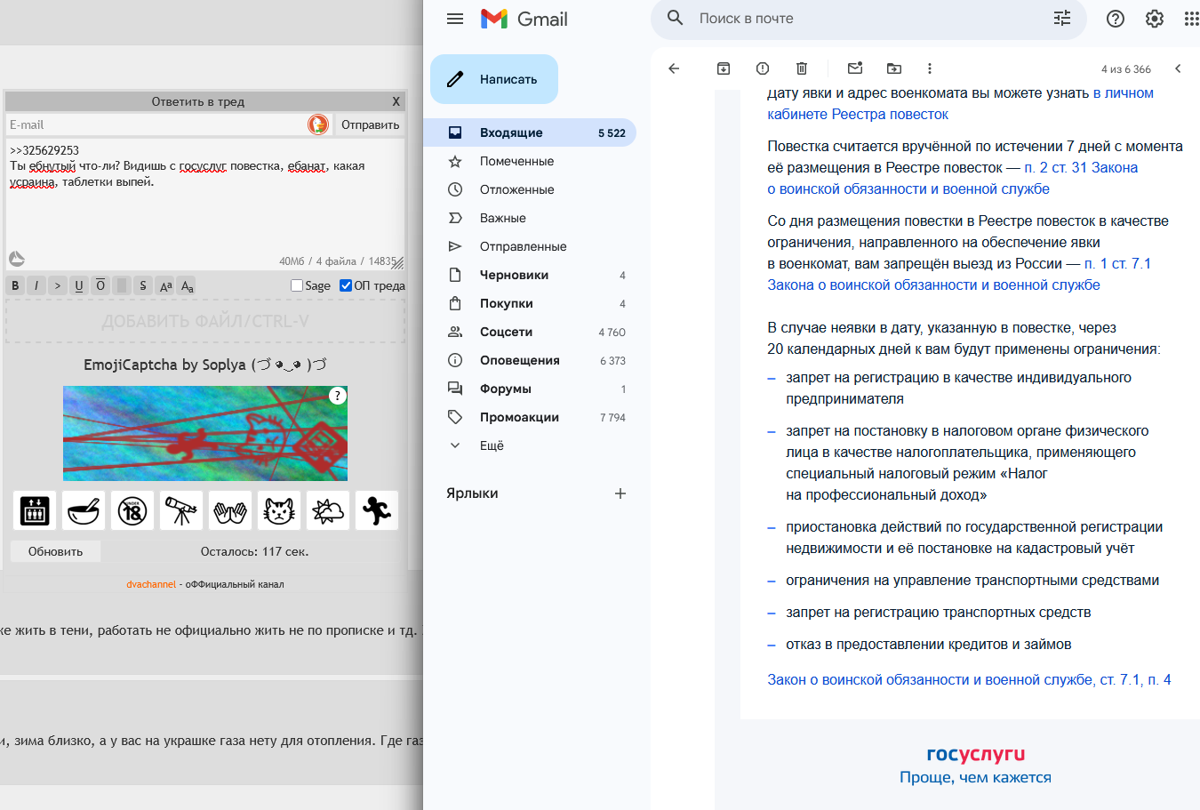 Это на срочку что ли? Мне вот бумажка на могилизацию приходила, которую я офк проигнорировал. Только вот теперь с этим реестром злоебучим трясусь от каждого пушапа от гойуслуг.