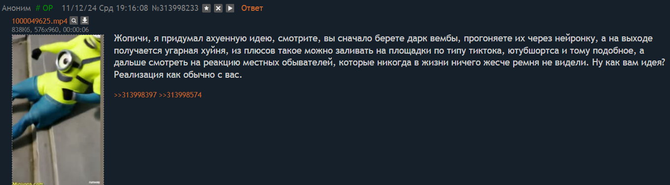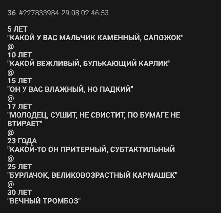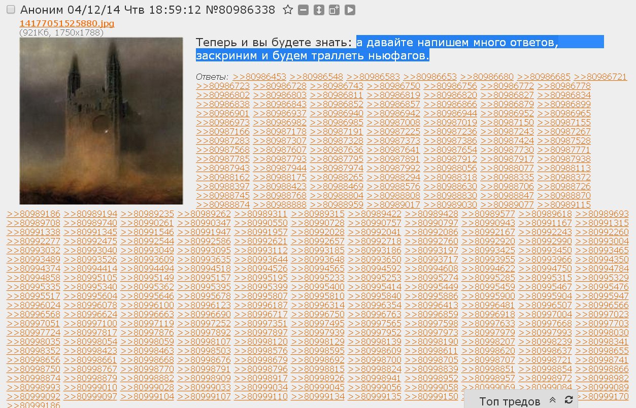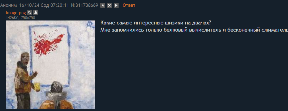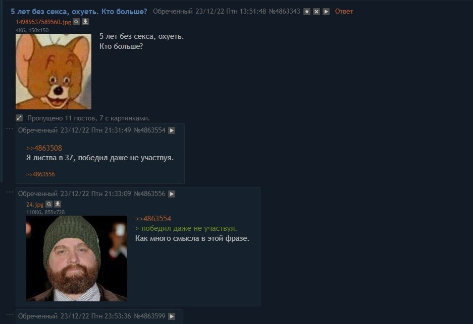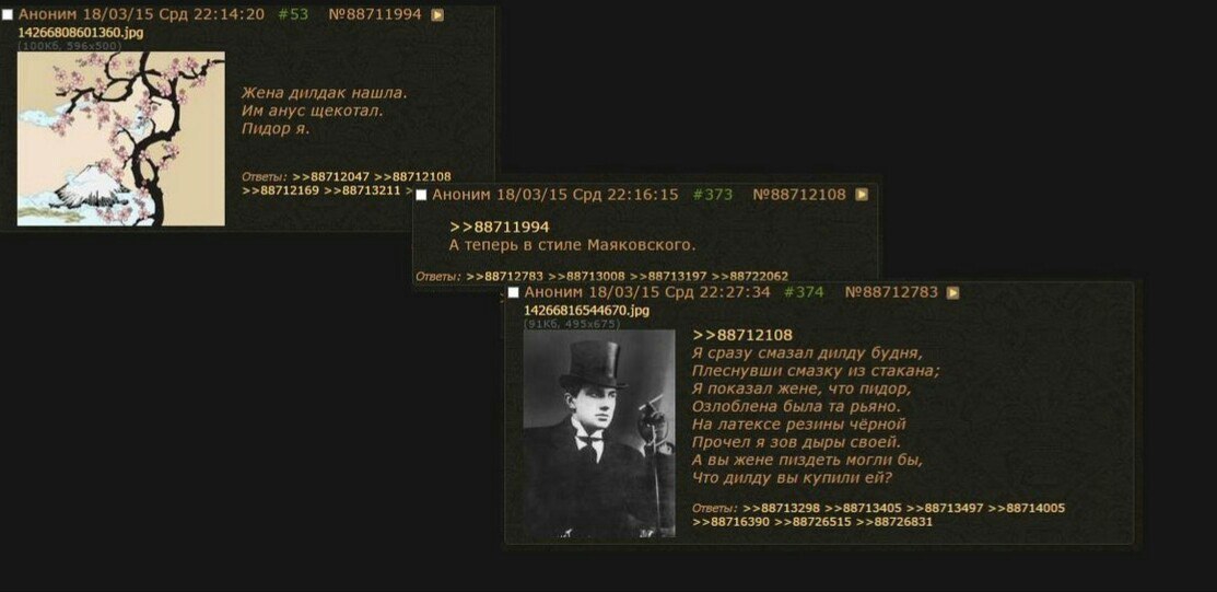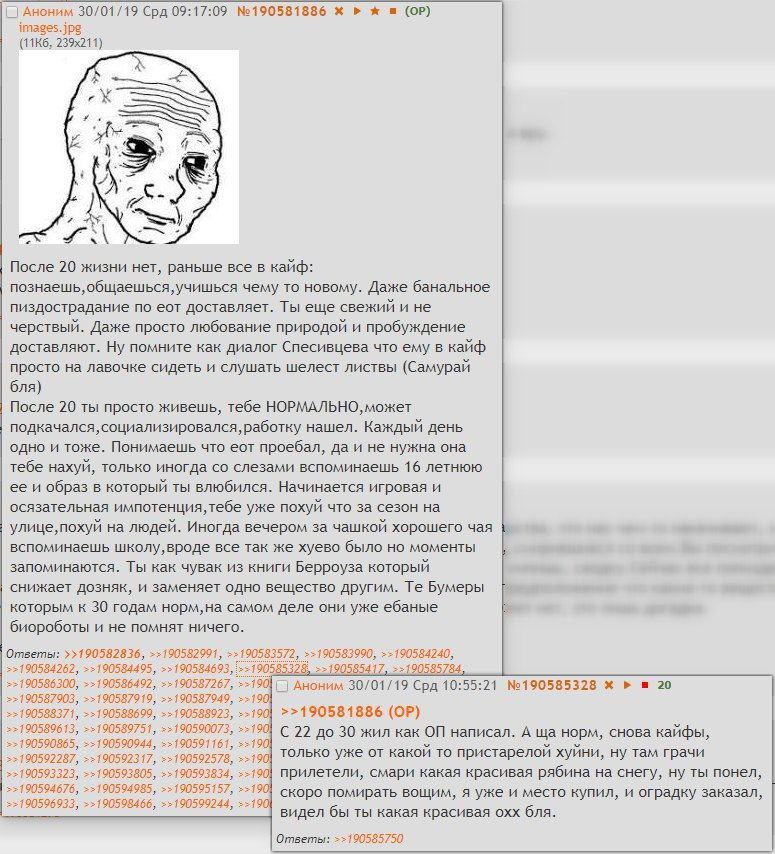 Эти треды невозможно читать. 99% тредшотов после ~2015 года - это юмор уровня имбецила (говно, моча, залупа). Борда, блядь, состоит из людей типа Максим Доши и Гамаз. И это не смешно.