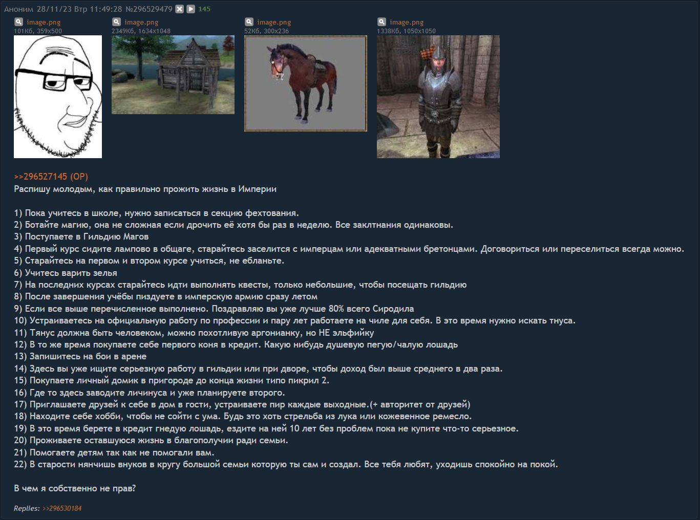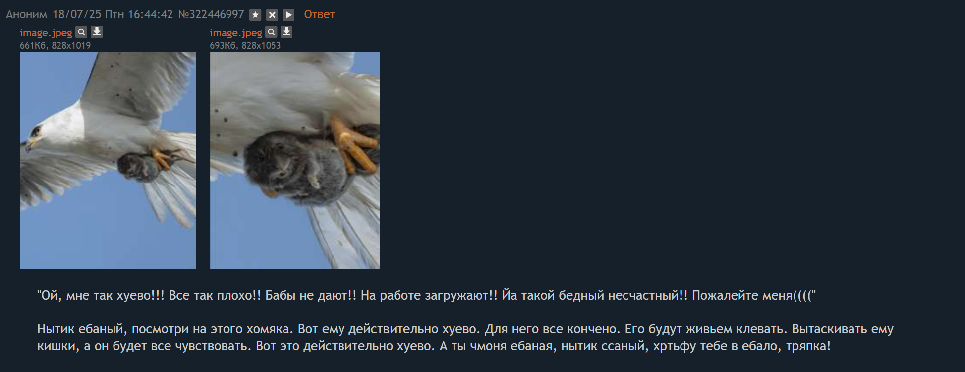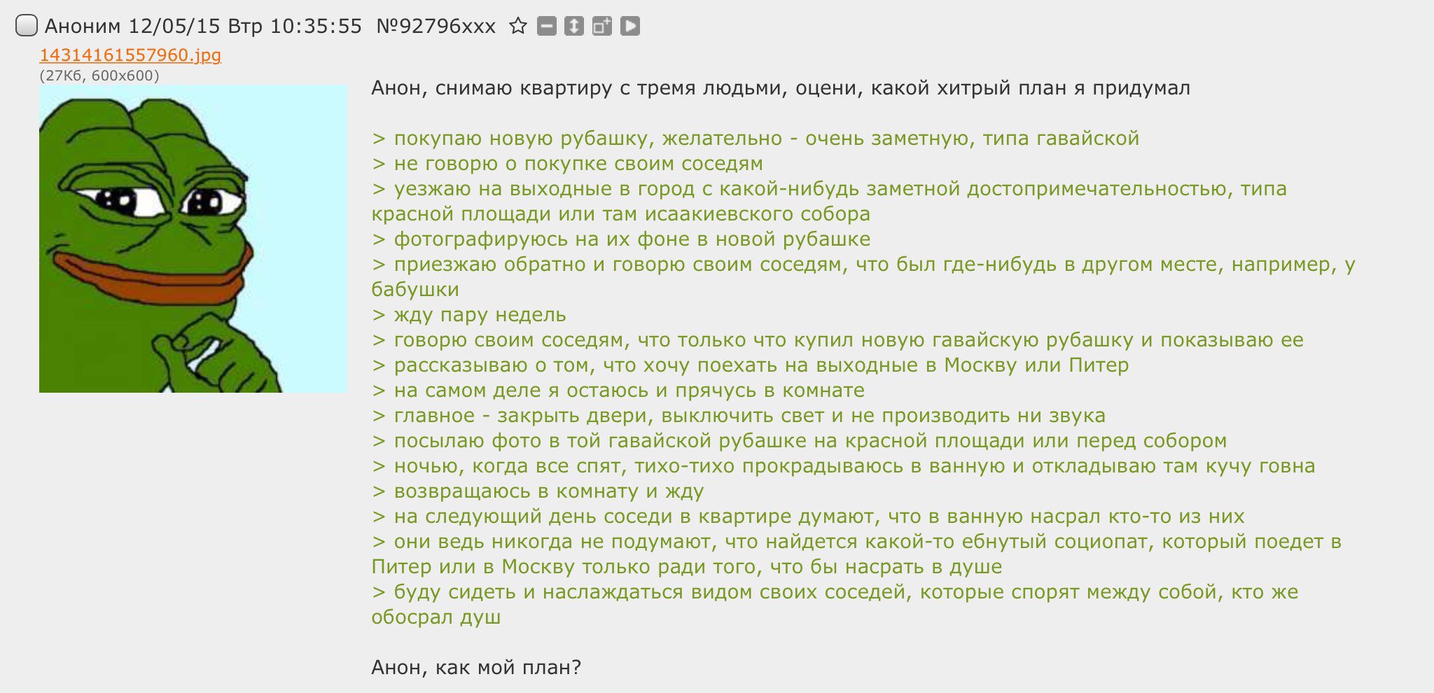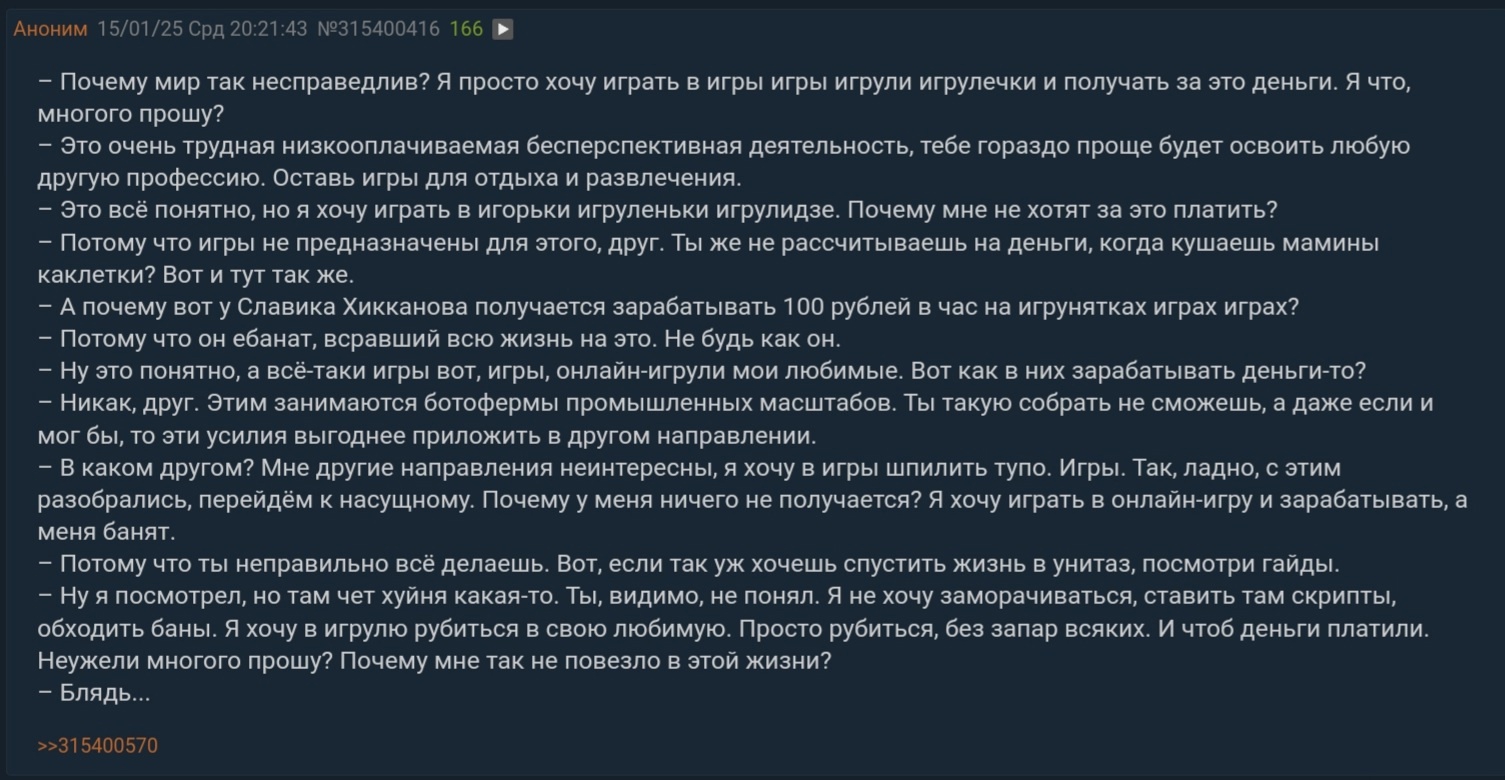 Эти треды невозможно читать. 99% тредшотов после ~2015 года - это юмор уровня имбецила (говно, моча, залупа). Борда, блядь, состоит из людей типа Максим Доши и Гамаз. И это не смешно.