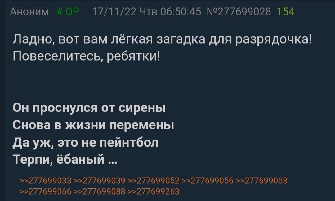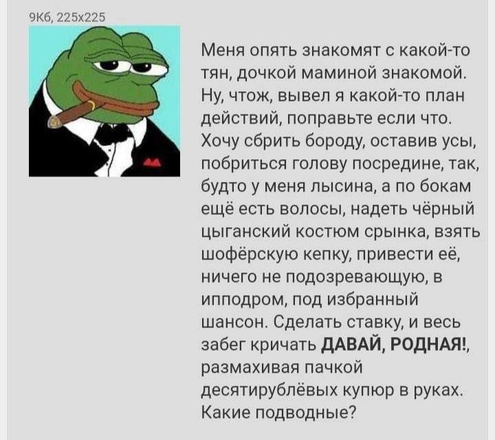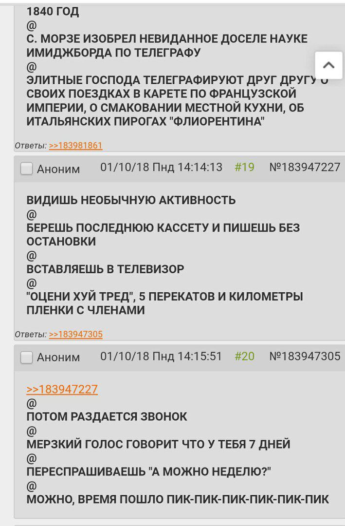 >>325680133 > Была. Ок. Хотя я хз, кто там в 2007 году сидел. > И впараше уже тогда точно писали. Даже тхред с инвайтами был. Не писали никаких "впараше". Париши стали форситься уже на Нульче, когда говноеды начали раскручивать Слоника и тюремный сленг. А "норми" в рунете - сразу детект ньюфага. >>325680183 > >ыыыы душнила весь кек обломал > Заранее поссал на визжащую шваль Рак и быдло.