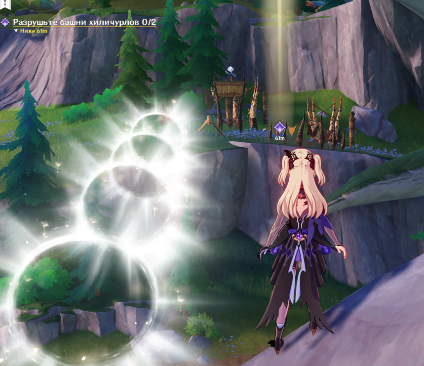 А теперь я буду разрушать башни хиличурлов... Дистанционно.