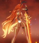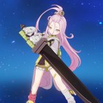 Что за мания дават здоровую рельсу мелкотян? Ну не будет она с этим бегать, ей или магичкой или с ножом, максимум мечём. Да и потом, нахуа меч, когда есть копьё? Если уж символизм, то куда более понятный