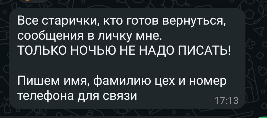 Хуярить как ишак за 5500км в рабочем доме бегунком с зеками, разъебывать биологические циркадные ритмы каждую неделю 6/1, спать в бараке по 12 тел на комнату, работать за двоих за 45к, а после стать сокращенным.✅