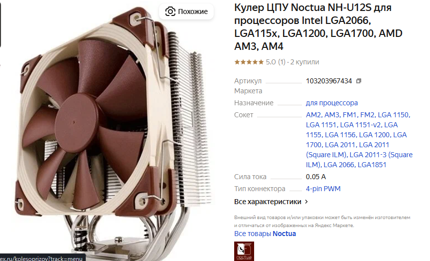 НУ так вот, мой кулер - Noctua NH-U12S. Покупал его давно, еще в 2018 году.