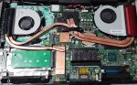 Анон, это же тред охлаждения? Немного нестандартный вопрос. Наколхозил себе на ноуте вторую систему охлаждения и теперь встал вопрос о воздушном потоке. Второй кулер забирает часть воздуха из вентиляционных отверстий, в теории мешая штатному. Да и не только в теории, там прям чувствуется, что все берут из одной дырки, грубо говоря. Думаю сделать раздельную перфорацию, чтобы дополнительный кулер забирал холодный воздух не мешая основному. Но где это лучше сделать и будет ли так вообще работать? Набросал примерные участки на пике, планирую насверлить отверстия только на одном, а то боюсь, как бы весь поток по пизде не пошел. Красный это место самого кулера, на зелёном это место для диска под sata, синий ssd. Логично было бы потоком охладить место под sata, потому что ssd на m.2 теперь охлаждается термотрубкой нового радиатора. Но ssd под sata особо и не греется, и вроде как можно перфорировать прямо над кулером, тупо отрезав его от общего потока, но максимально сократив путь воздуха для охлаждения непосредственно радиатора. Что скажете, эксперты?