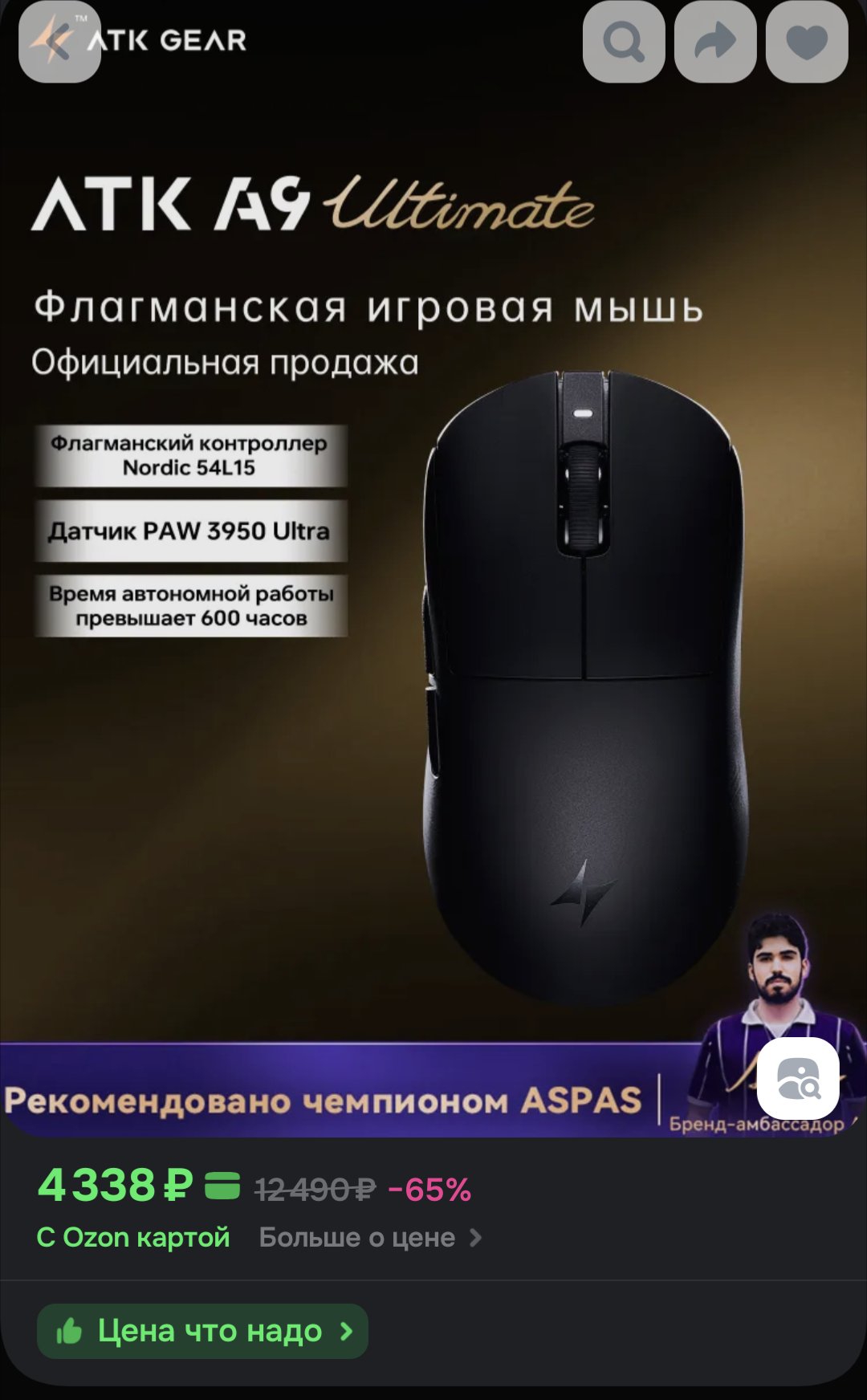 Купил в 2023 году мышку Ajazz AJ199 4K, не помню даже цену, недорого на тот момент, дешевле чем F1 Moba. Поюзал 2 дня и перешел на другие мышки. Недавно делал ревизию своих мышек, перетряхнул коробку и нашел. Ебать, у нее все еще хорошие спеки. 3395, 52 нордик и 900 акум. Софт как у Ламзу. Держит заряд на 1К пиздец долго. Покрытия нет, пластик охуенный. Купил на нее глайды полноразмерные, magic ice и охуел какая крутая мышка. Если что, 4К ресивер в комплекте. Сток глайды говно. Мало ли кому полезно будет.