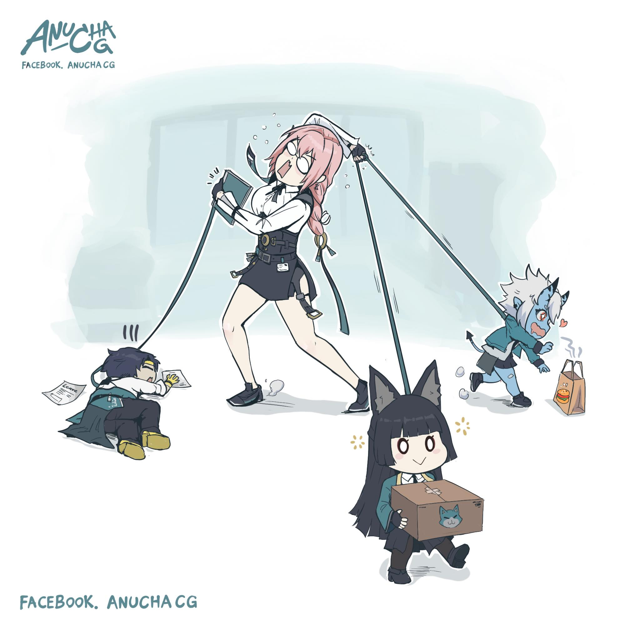 Орфея, два хвоста, Сид косичка короткая, у Гашетки тот самый твой любимый хвост, Юзуха с двумя косами, у Алисы просто два хвоста