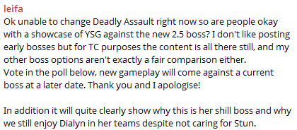 Потому что новый недельный босс, потому что что новый персонаж в нулевке.