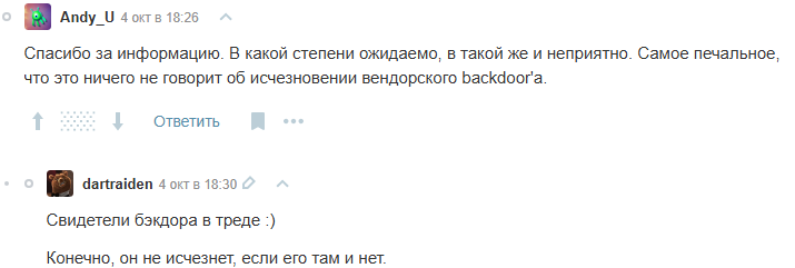 Ну а соевые выблядки шлюх с хабра которые собираются торговать наркотиками и взламывать банк ( sudo hack bank) и поэтому они очень переживают по поводу воображаемых бэкдоров у них в анусе пусть заткнут их анальной пробкой.