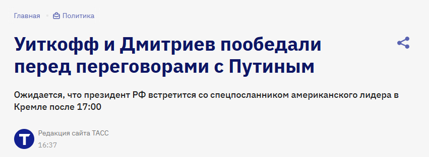 В начале декабря 2025 года в Москву приехал Стив Уиткофф, доверенное лицо Трампа. Его задача заключалась в том, чтобы на месте согласовать условия мира на Украине (российскую сторону в Москве представлял Дмитриев).