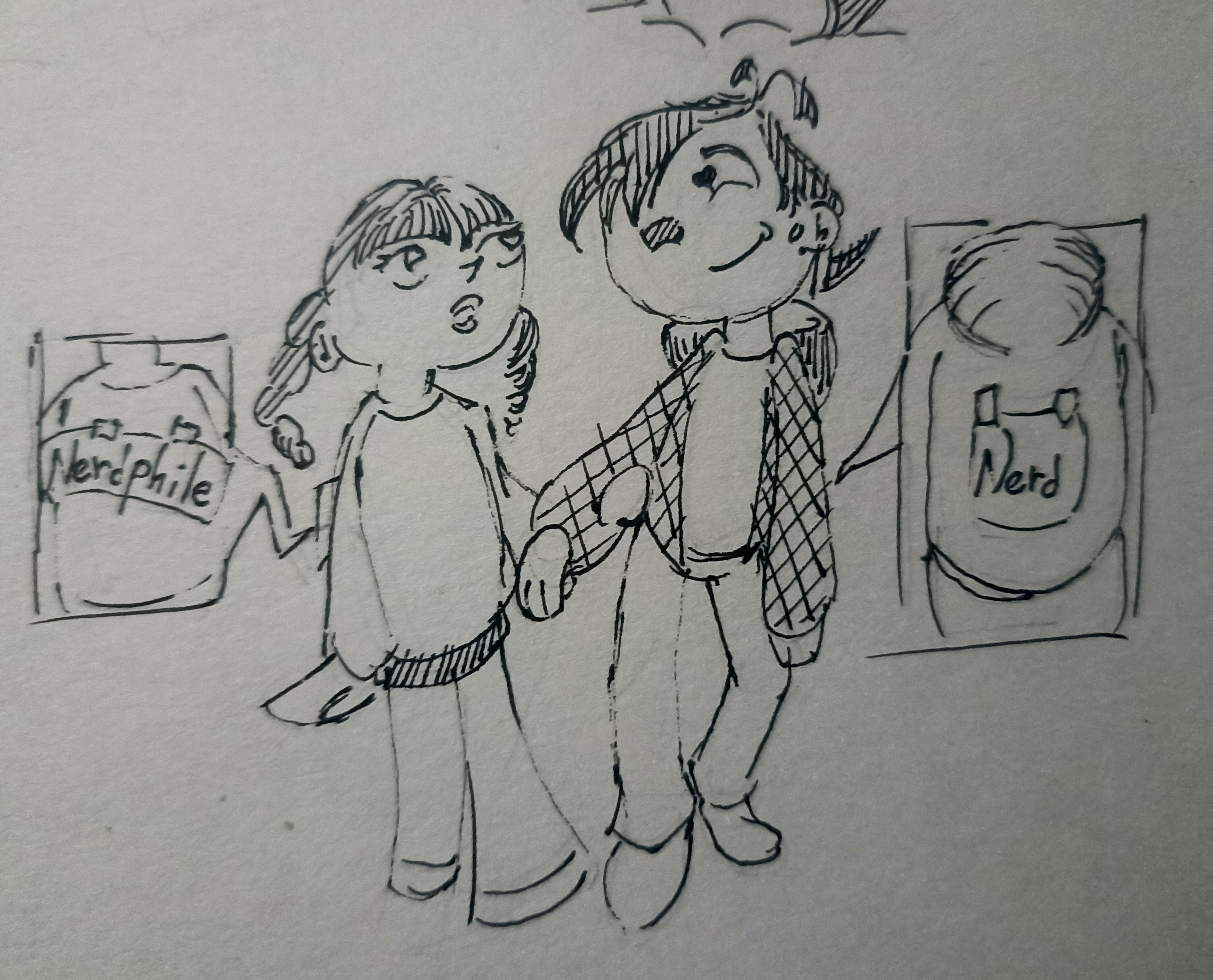 >>327280407 (OP) Реквестирую нарисовать как Шелдон, гениальный ботан, с одноклассницей главных героев, этой девушкой с косами, Сандрой, идут, держась за ручки, смотря друг на друга с нежностью, начав встречаться после того как она к нему подкатила, от чего он был ошарашен но затем принял её инициативу, а у них на спине наклеены листки насмехающимися над их отношениями задирами. Там написано: ботан, ботанолюбка, только на английском манер, то бишь будет "nerd", "nerdphile", отсылка к ситуации из серии где у Дженни с Трэвисом начиналось сближение, а им наклеили листки с насмешками.
