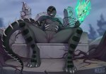 Фиолетовая дракониха дрочит член своими огромными развратными сиськами, крепко сжимая их в руках. Две колоссальные висящие дойки ритмично скользят по налитому стволу, готовому взорваться кончей в любой момент. "Еби моё сучье вымя!" - кричит обезумевшая от похоти Алексикус, скаля зубы - "Еби эти шлюшьи титьки, ЕБИ!" Взгляд дракопы переходит на натруженную лиловую залупу, и плотоядно облизнувшись и застонав она кусает мясную сливу, из за чего пузырящийся секрет брызгает ей в глотку.