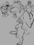 Озорная рыжая бобриха Рыжелина (1-2) сидит на камне в полузамёрзшем озере рядом с озадаченной водной ящеркой Несси (3-4) отгрызвши кусок её деревянного (Рыжелина - бобр) дилдо и пальцами трогая её клоаку (4), либо же просто делая Несси массаж (лайт версия). Бобриха настаивает, что живые девичьи нежности лучше удовлетворяют, чем членозаменители.
