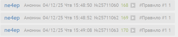 >>25710779 >Двач — анонимная имиджборда. За злоупотребление трипкодами, аватарками или иными способами идентификации постеров возможны баны вплоть до перманентного. дерьмо ты уже подохуело угомонись