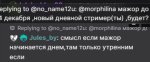 Короче по таймингам эвелон позвал кишков на бункер 21 января, потом Глеб и Лера были в сочи в начале февраля числа 5-7, а первый совместный стрим Морфи и Эвелона, когда они играли кс 1 на 1 был 20 марта, до совместного стрима в марте он позвал ее в стак в кс 23 февраля, но дата не точная, но плюс минус эти дни. Я вообще не ебу и даже предположить не могу, ебались они или нет, но мне кажется нет, потому что вели бы себя совершенно по-другому, ну и плюс я не верю, что Морфи можно выебать всего один раз и хуй на нее забить, ее бы поездки в сербию были регулярными, если бы они ебались. Потом я помню Вадя пропал на месяц с мая по июнь, он бухал целыми днями, на стримы не ходил, нигде не появлялся, потом выяснилось, что это из-за какой-то девушки было точно не лера, о чем он говорил много раз, ну и после уже они начали легкий шип с морфи, не такой, как с ариной конечно, но все равно шутки и намеки и подобная хуйня была, ну а потом появилась Аринка. Мой вердикт - глеб умственно отсталый долбаеб, когда его уже отменят, я не верю, что его смотрят еще 50 к таких же дцпшников, как его речь вообще слушают, у меня кровь из ушей нахуй