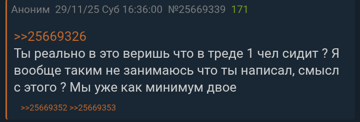 >>25669326 Хз, я один раз нахуярил 10 реплаев на фотку овлы и мне вообще похуй было. Хуй знает, кто боится, что ему ебанько жировик напишет, что он один анон. Еще бы я блять заходил с разных браузеров и айпишников >не палится Ой, как же страшненько, блин