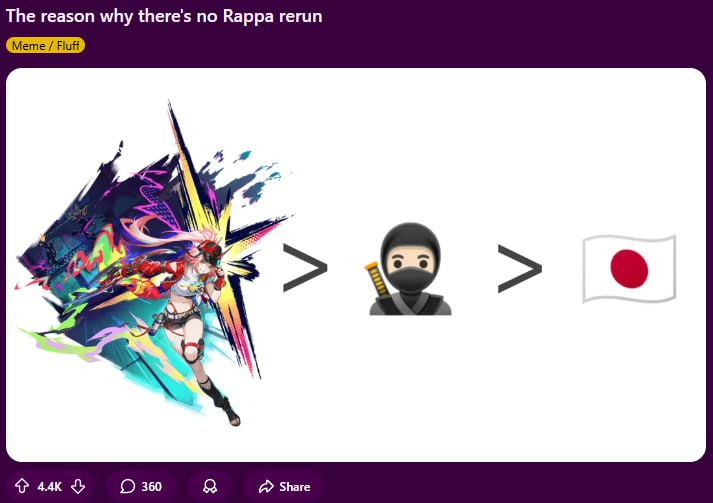 Бля, честно говоря, мне Раппа даже за черепок не нужна, даже если её баффнут. У меня есть Фуга и Линша. Этим дуо ии хочу играть. Своих галактических пидоров оставьте в космосе. Единственный, кого из них могу принять - прошлое воплощение Март.
