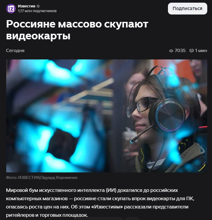 Да ваши пеки вообще нахуй не сдались никому, это скам альтман в соло выкупает поставки чтобы конкуренцию придушить. Геймеры тут так, чисто за компанию под раздачу попали.