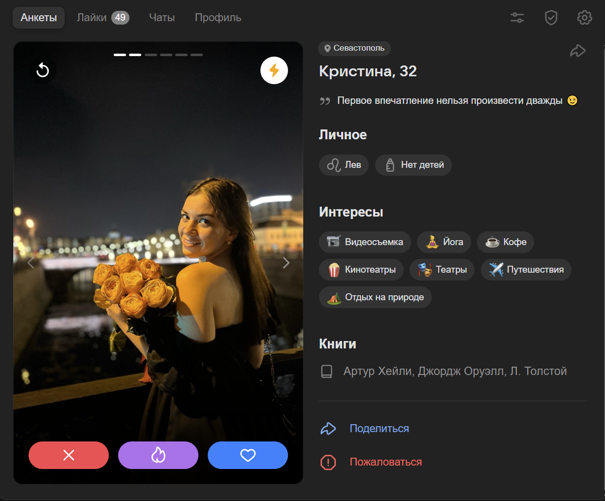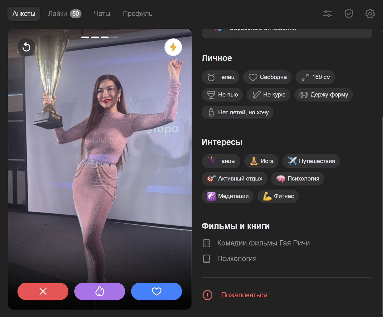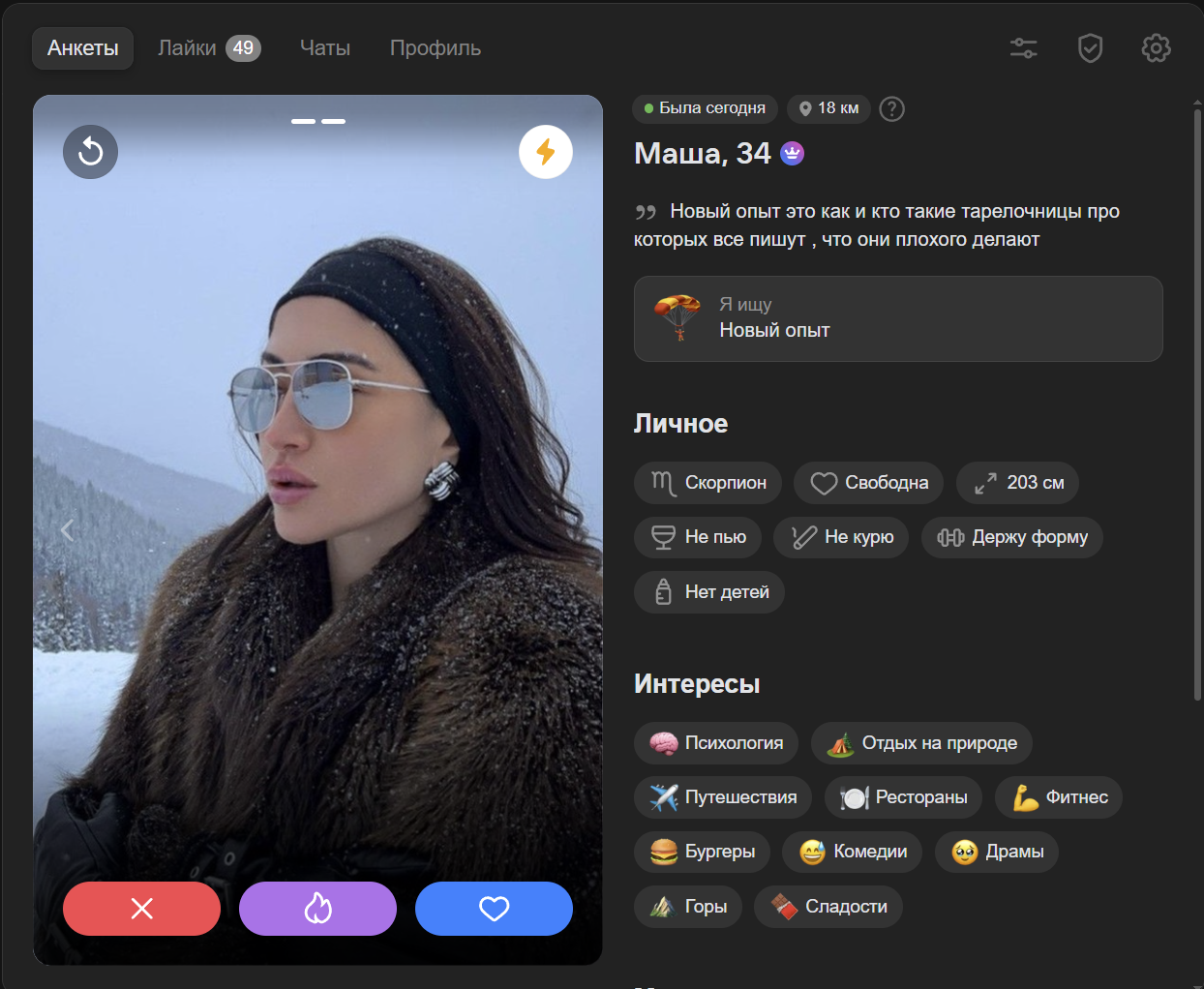 я бы хотел из анкеты понять какой у тебя характер, ебанушка ли ты, какие у тебя ценности помимо ебучих путешествий, карбонары и новых впечатлений. ебучие нпц