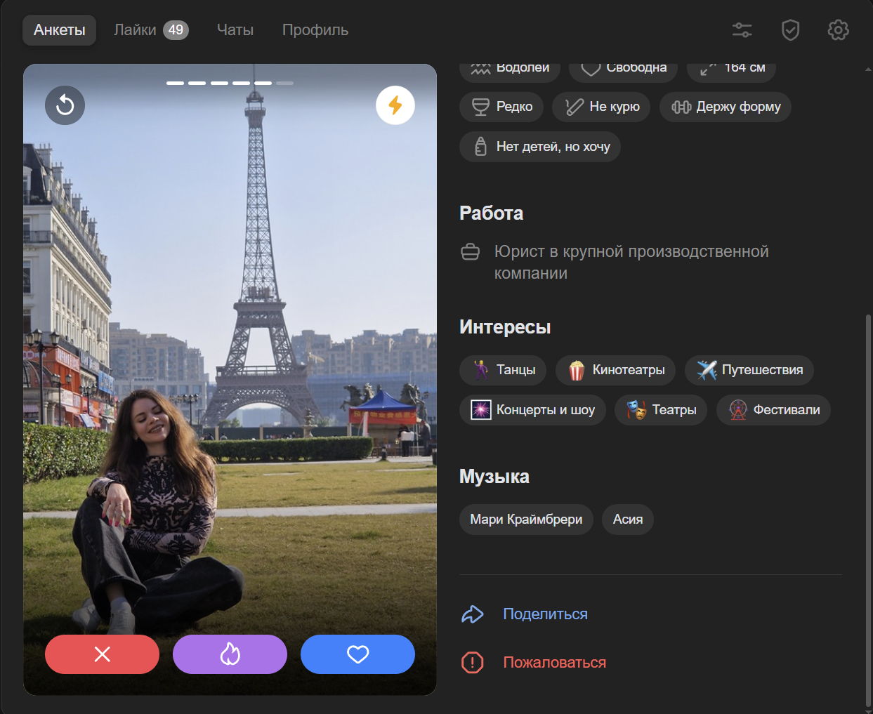 а вообще в принципе путешествие это хобби, тянка наверное правильно делает что это упоминает сразу что для нее важно куда она ездила, чтобы найти куна который тоже любит (и может) кататься по миру