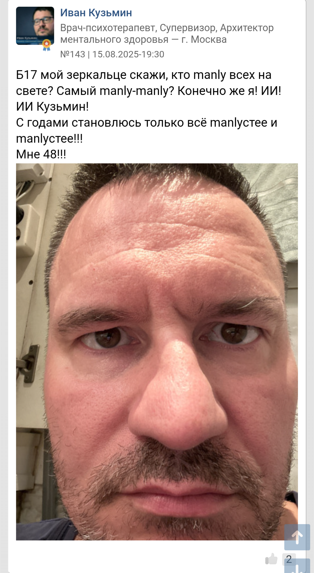 Анон, зацени какого кадра нашел! Психолог. Была тема, в которой парень переживает, что некрасивый, а лет в сорок вообще уродом станет и тут вылез это специалист. То ли он хвастается, то ли скорбит. Что по внешке у него?