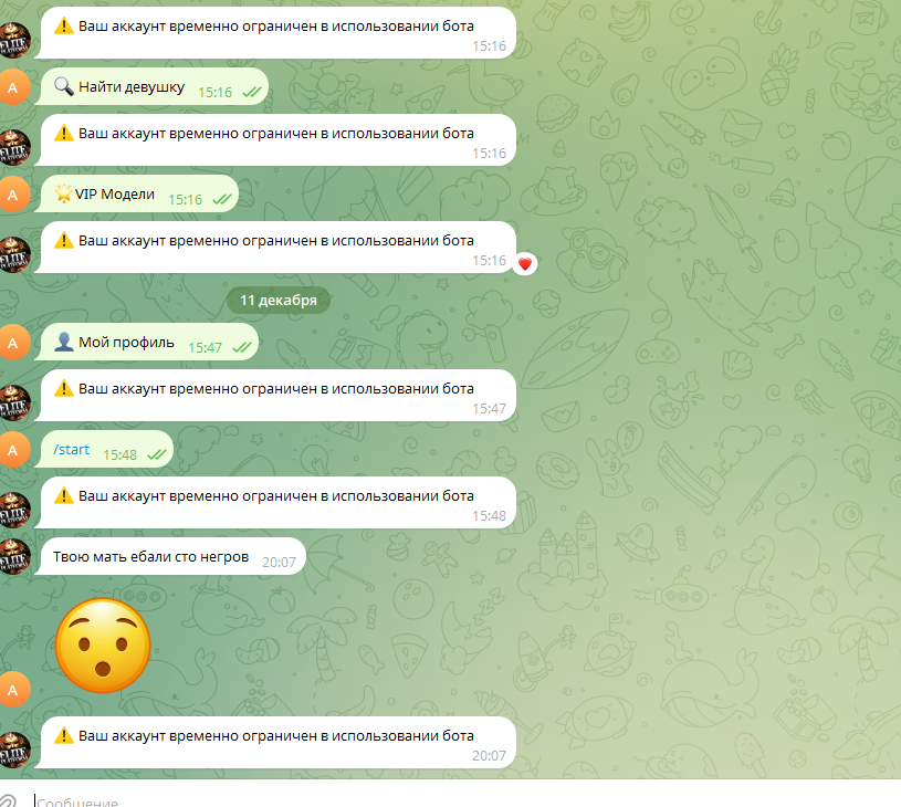Ну что анон. Вы мне не верили думали я смсщик. А я... трахнул сочную зумершу за 6к с поцелуями и мбр и овр и аналом за 3к... правда в мозг) В общем на днях я тут рекламировал агентство шлюх и легендарные презервативы но в этот раз не буду. И обидно мне как то стало что а вдруг меня и правда пытаются наебать... не люблю когда меня наебывают. Знаете там когда к шлюхе пришел на два контакта а после оргазма ты потом ну что продолжим? А она такая ой а у меня один контакт. И уходишь с чувством наеба даже шлюху не выебал ведь ты скорострельнул от минета. А если доплатить то секс уже как будто хуйня и вайб не ебливый потому что тебя наебали. Ну или банально фото не соответствует а кого то искать уже на хуй и ты ебешь шлюху за 10к которая выглядит на 3к... Так вот. Человек я еще душный как видите если читаете этот пост) люблю во всем разобраться прям конкретно так а если загорелся то вообще иду до конца. Ну и тут я решил с сочной зумершей перед встречей пойти до конца и все выяснить максимально чо по допам и как будет наша встреча проходить. Пикрелы что из этого получилось. Сочной зумерше начал писать всякие неприличности про анал вылезать мне попку и как ее попку распечатаю и накакаю туда... И знаете эта зацикленность на анусах + гомофобия у наших славянских народов так сказать вызывает наверное бугурт когда кто то их в жопу выебать хочет ведь обычно они хотят. Если про мужиков речь идет... а сочная зумерша видимо ШОК это зумер. Видимо у него подгорело и он начал помимо своей жопы бомбить меня с нескольких акков и даже с того самого бота где по идее только заказать можешь а писать нельзя. Смски он конечно же потер все и забанил но в целом я доволен своим расследованием)