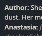 >>1449087 >Для меня дебильная разметка с Author: Anastasia: убивает погружение в ноль куда больше. Вот просто всё плохо в этом. Не могу, не моё. Устами ньюфага глаголит истина.