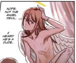 >Omigod, omigod, I castrated my best friend! Not good, Miller, not good! >But if you EVER joke like that again… I'll aim LOWER than your balls. (...) Empty space? ... Oh my GOD >"We've been dating FIVE MINUTES and you're already asking me to WINGMAN for some blonde bimbo?!" grabs spatula from counter, brandishing it like a weapon "I will END you!" >Are you asking about my… my NIPPLES?! We've been dating FIFTEEN MINUTES >I'm your GIRLFRIEND now! You can't call me MISTER anymore!