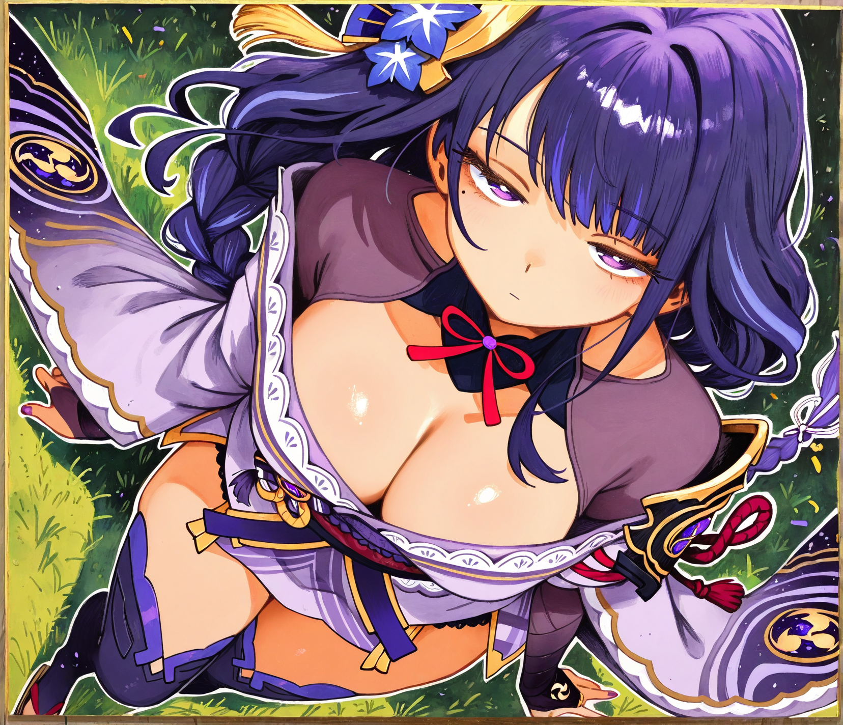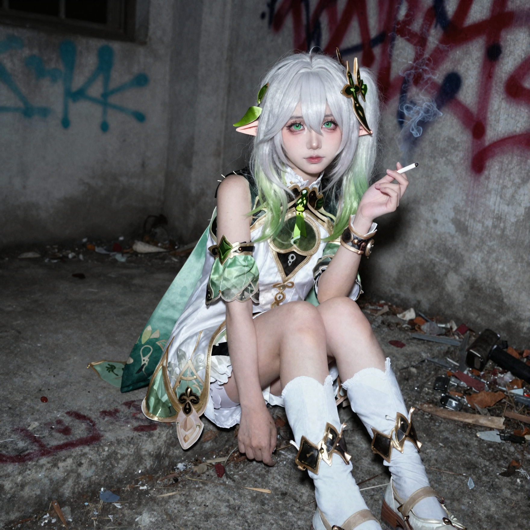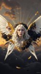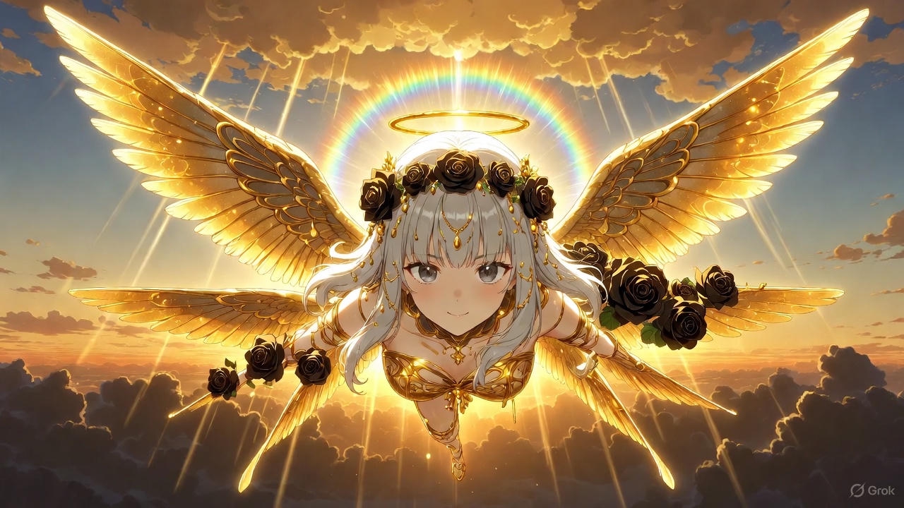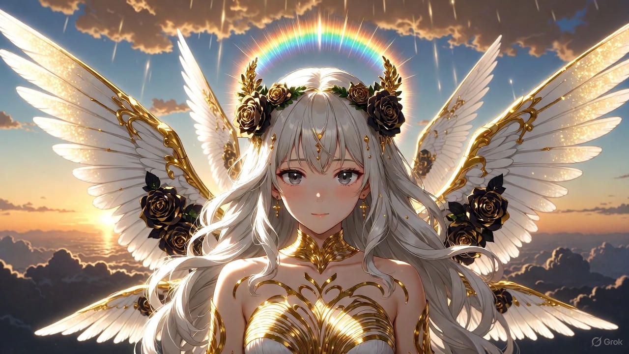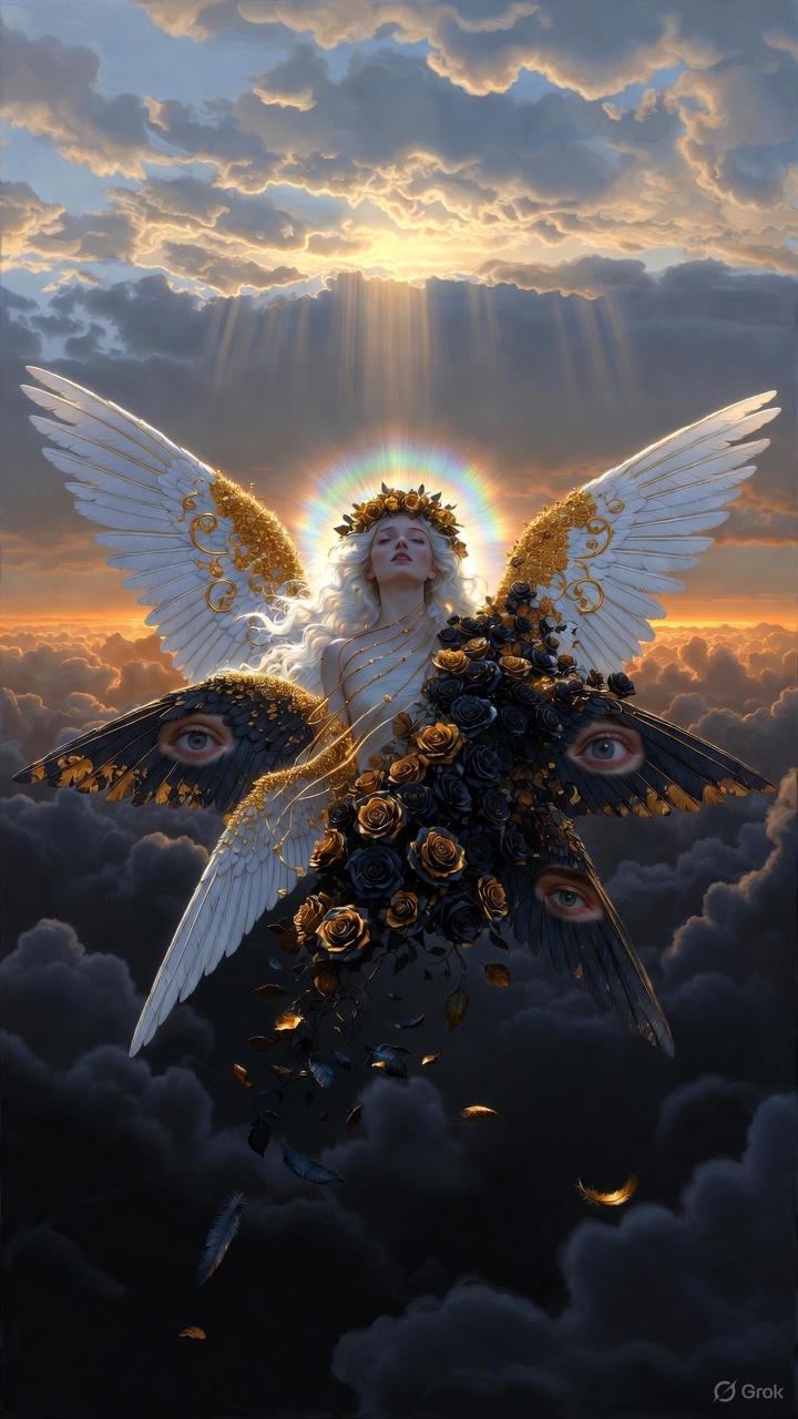 >>327563862 хз, это же фап-тред на основе технологии нейронок, а не изучение пределов этих же нейронок в области создания некого "совершенного искусства". Ну давай попробуем рискнуть сгенерить фоточку на основе моего примерного шизанутого под грибами длинного промта ради утоления твоего любопытства пока я его ещё помню, не знаю съест ли нейронка такой сложный промт или нет, ну сам его тогда дополнишь или изменишь, исправишь по своему видению: размеры холста 1920х1080 (16:9), аниме-стиль, vhs эстетика. На заднем фоне в дали с верхней стороны на небе эстетические гигантские пасмурные облака отбрасывающие "божественные лучи" вниз, с нижней стороны те же но темные пасмурные облака на которые и падают "божественные лучи" сверху, в конце горизонта между двумя облаками солнца не видно, но отдает золотисто-оранжевыми цветами словно при раннем закате. В центре холста в некоторой дали от камеры располагается ангел левитирующий над высотой, взрослой внешности, женского пола в ангельском одеянии, с длинными белыми волосами в золотых орнаментах и линиях, на голове некий венок из темно-золото-черных роз в стиле винтаж, на них отражаются лучи от утреннего золотисто-оранжевого заката отбрасываемый сзади от горизонта и некоторыми лучами из верха, которые немного вьются дальше по волосам. Не имеет нимба над головой. Имеет яркое эстетическое почти радужное гало за головой. Красивые серые зрачки вбирающие в себя отражение от окружающей среды полной золото-оранжевым закатом, с красивыми элегантной формы глазами, за спиной шесть больших ангельских крыльев в золотых орнаментах и линиях напоминающих формы крыльев бабочки, с ярко-белыми перьями имеющие золотую текстуру на их кончиках. Частично на крыльях начиная со спины покрываются вьющийся темно-золото-черные розы в стиле винтаж, чем дальше от спины тем их меньше. На некоторых частях крыльев располагаются человеческие глаза разных размеров и количества, так же имеют серые зрачки вбирающие в себя отражения окружающей среды полной золото-оранжевым закатом. В некоторой дали от ангела, отброшено несколько десятков перьев, чьи золотистые кончики сверкают под светом окружения, и несколько десятков лепестков от темно-золото-черных роз, которые так же отражаются от окружающего света